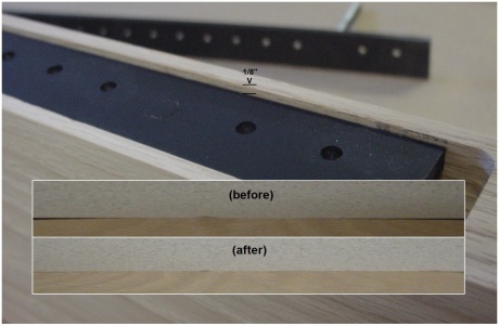 The channel in the back of the shelf is cut approximately 1/8" deeper than is required for the hardware in order to provide material for fitting the shelf to an uneven wall or crooked stud.