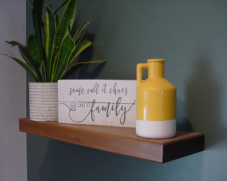 We can make shelves in nearly any length and depth, in a wide variety of material species. Our shelves are 1-3/4" thick SOLID hardwoods with a 3/16" radius edge, top and bottom, as standard. Alternate edge profiles are available. We can also radius the two outside corners if you desire.